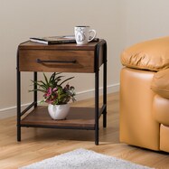 ナイトテーブル サイドチェスト 収納ラック サイドテーブル 寝室 隙間収納 木製 ブラウン 茶 北欧 リビング収納 モダン お洒落 可愛い サイド チェストテーブル 一人暮らし 2口コンセント付き コンパクト 収納家具 引出し付き ベッドサイド キャビネット 引出し おしゃれ