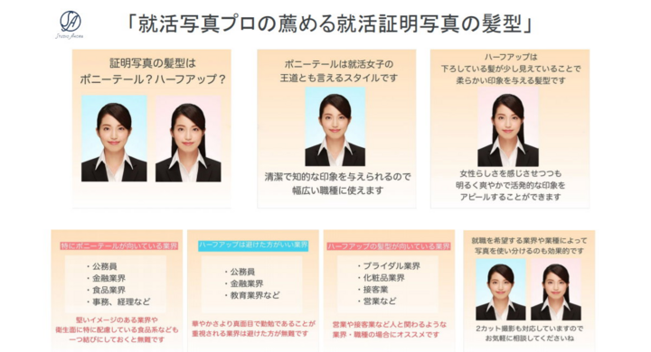 就職活動写真一発合格への道 写真の高橋フォトスタジオ caさんの髪型は ショート ボブ ロング ハーフアップ シニヨン 前髪は 一般就活の髪型 も同じでいいの